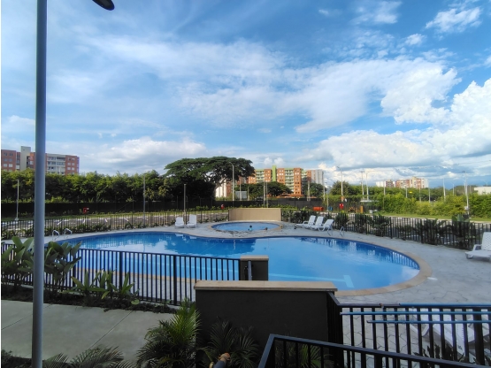 Alquilo excelente apartamento para estrenar en bochalema cachipay conjunto residencial MANZANO, es un piso 9 con ascensor, consta de 2 habitaciones, principal con baño privado, estudio, cocina semintegral, zona de oficios, sala comedor, balcón con vista interior, parqueadero comunitario. La unidad cuenta con porteria las 24 horas, zona de juegos, salon social, piscina para niños y adultos.
